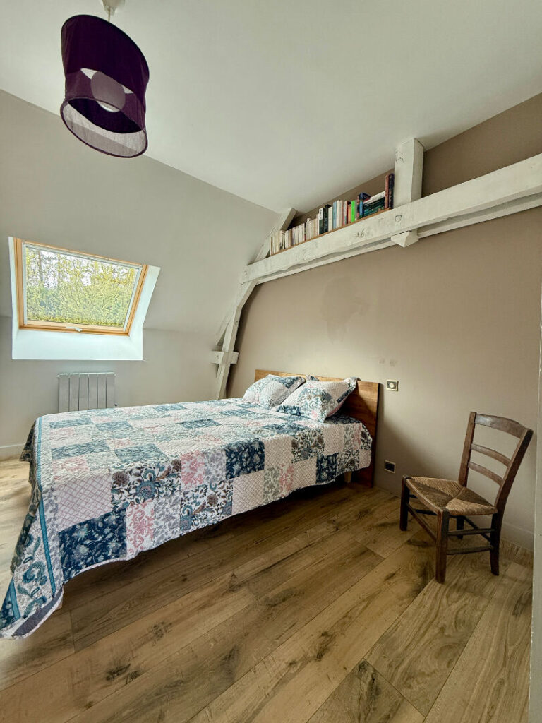 A l’étage, un dégagement distribue trois chambres ainsi qu’un grenier aménageable, offrant un beau potentiel supplémentaire.