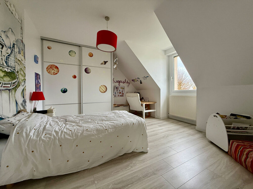 A l’étage, un dégagement avec un espace bureau, deux chambres supplémentaires, une salle de bains et un WC.