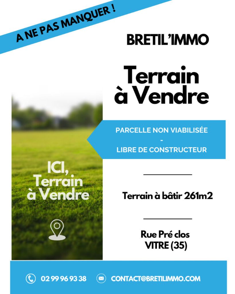 Terrain constructible d’environ 261m² situé « Rue pré clos » à VITRE.